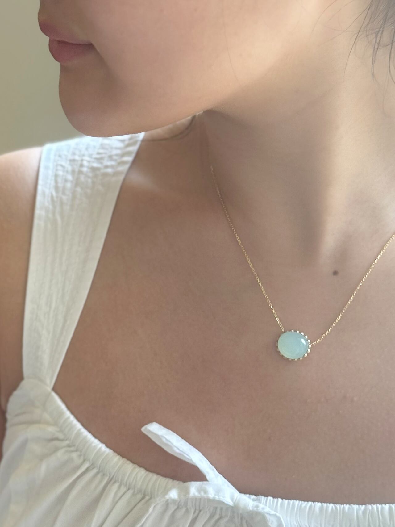 ※ この淡く優しいブルーは、天然カルセドニーに繊細な染色を