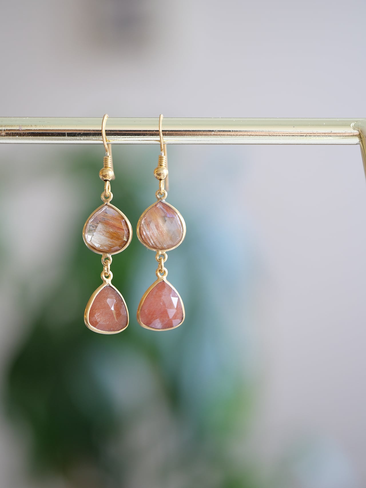 ルチルクォーツ、サンストーン (全長 約4㎝ )