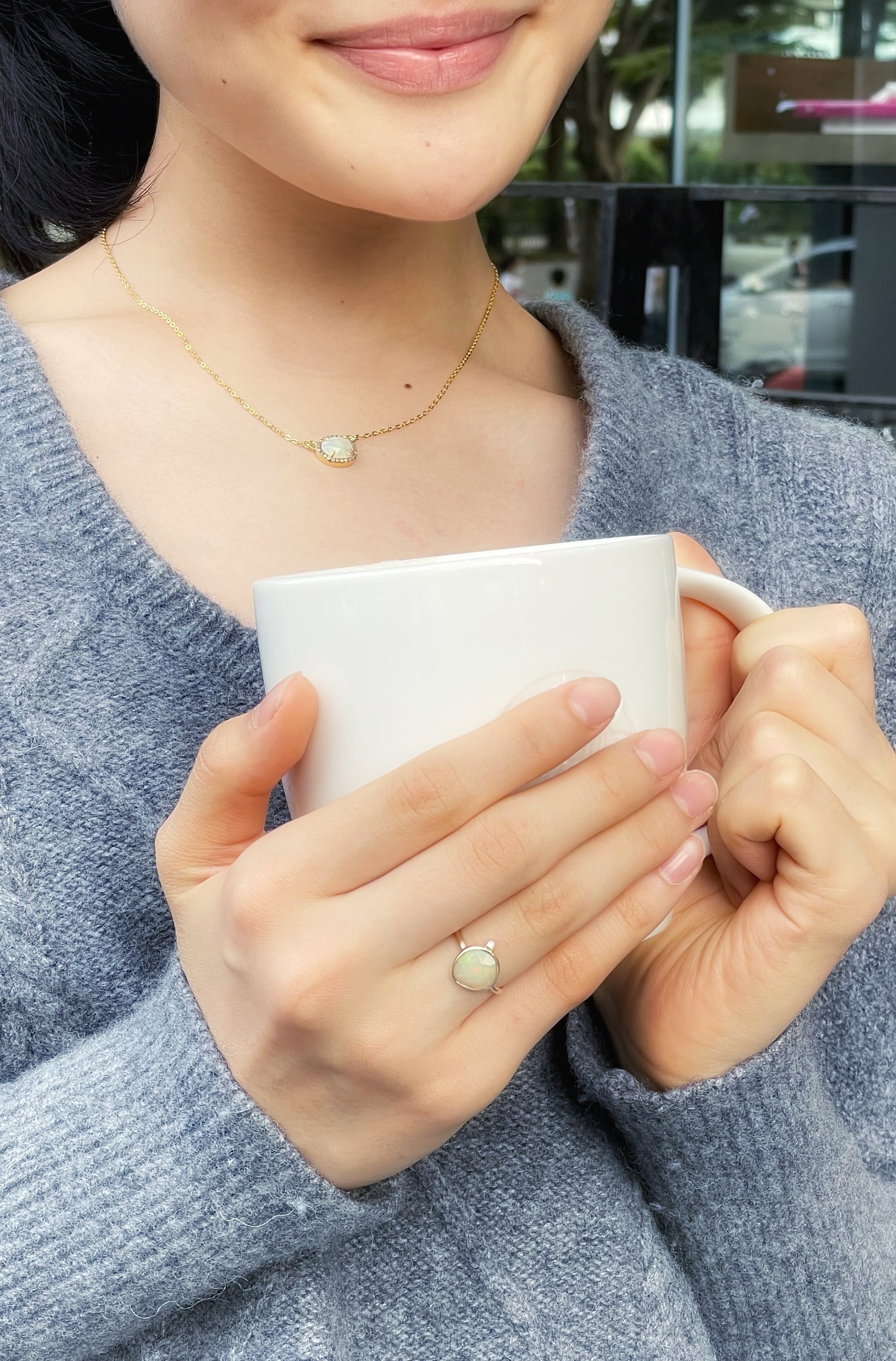 ※オパールの性質上、一つ一つの遊色の出方や色合いが違っています。また、こちらは形も少しずつ違い、それぞれが一点ものです。イメージ写真をご覧いただき ご理解の上お求めください。また、美しい遊色で定評のあるエチオピアオパールですが、他のオパールと違い水に弱い性質がありますので 水にあたらないように気を付けてご利用ください。