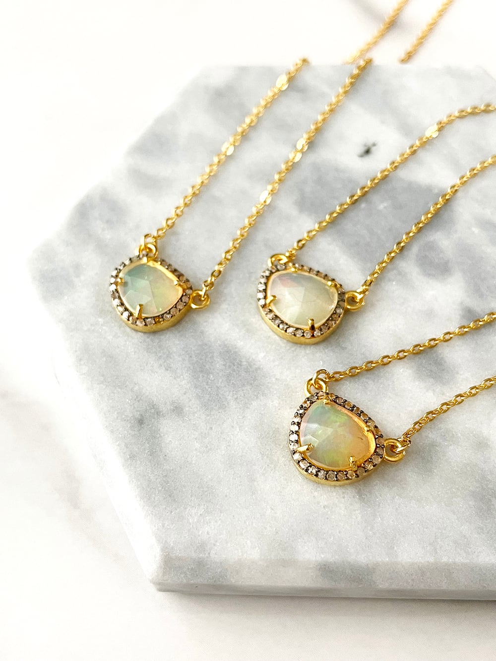 エチオピアオパールとダイヤが煌めくペンダントです。