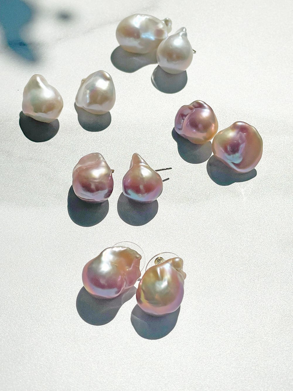 ピンクやシャンパンカラーがほんのり感じられるパープル系のバロックーパールのピアスを集めました。