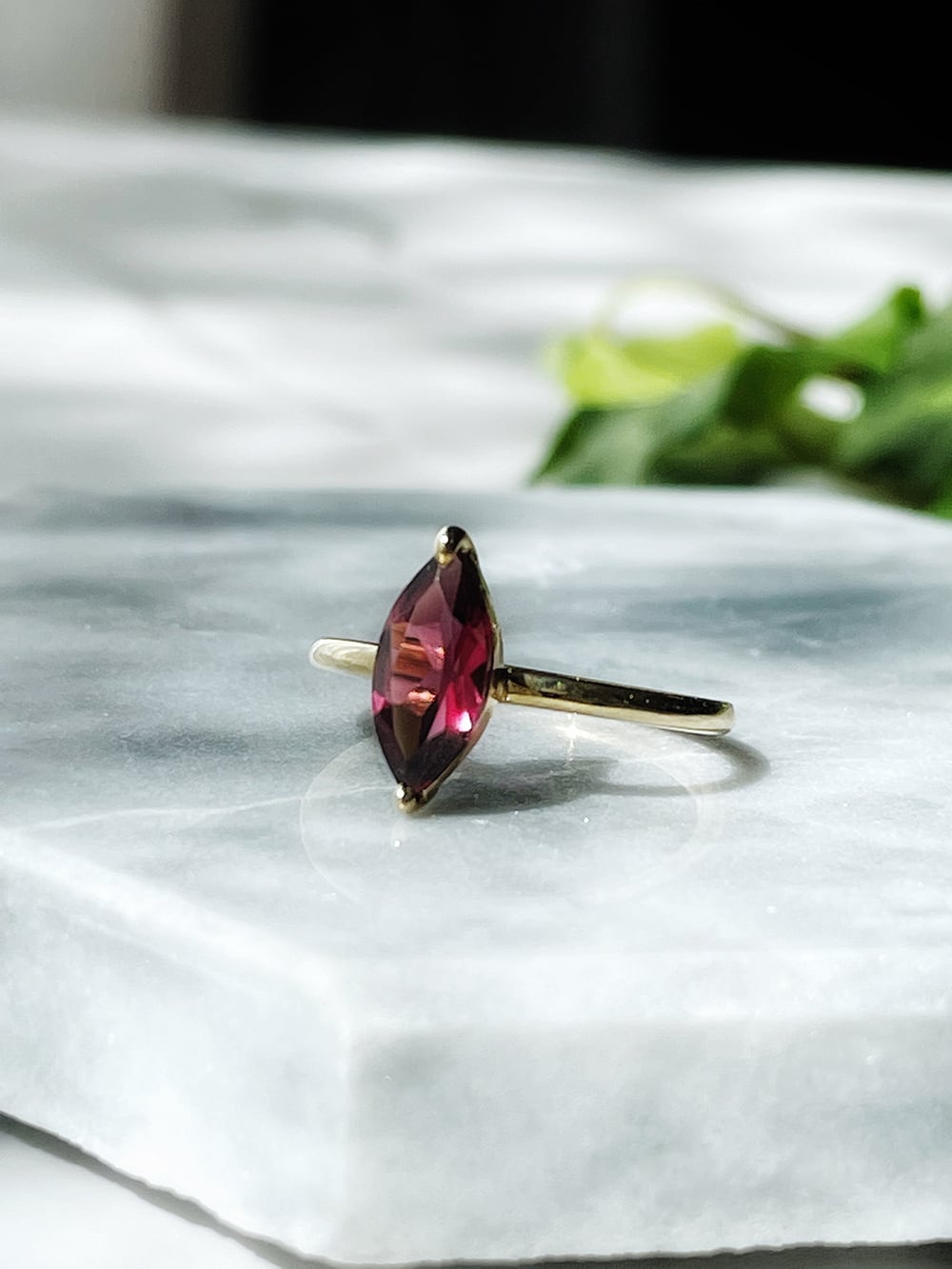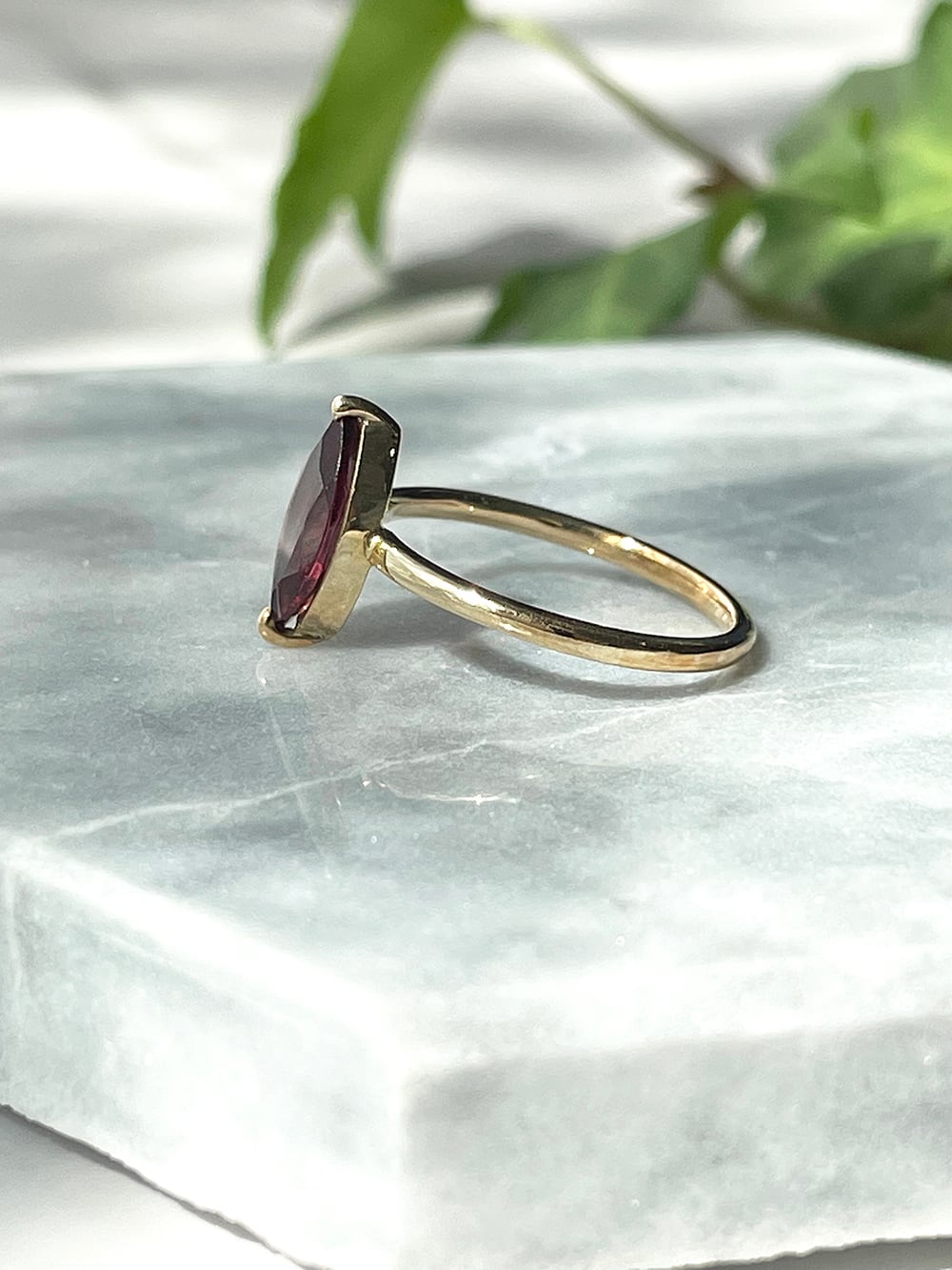 少し紫がかったワインカラーの美しいガーネットリングです。