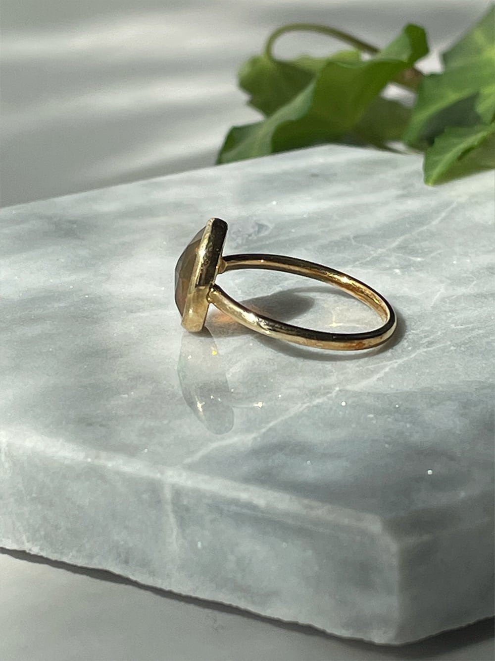 情熱的なネイミングとうらはらにとても 優しい印象を受けるアンバーカラーの石です。
