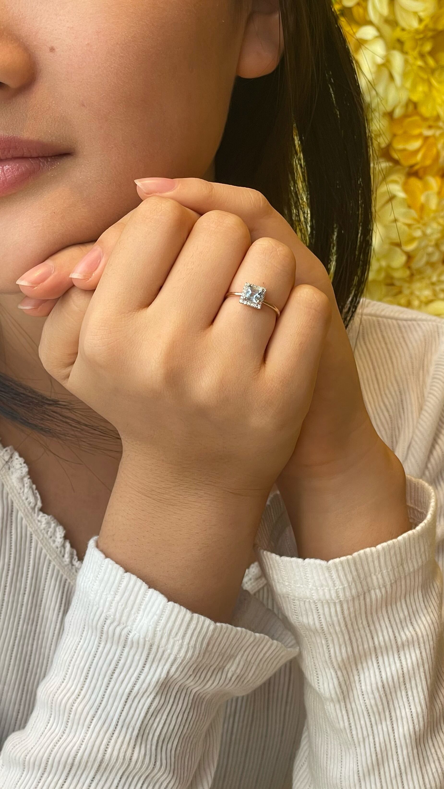 3月の誕生石、透き通ったアクアマリンのリングです。