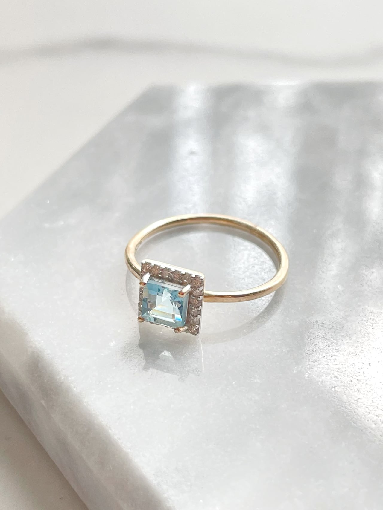 K10 アクアマリン 縦横 約5㎜×5㎜ ダイアモンド取巻き