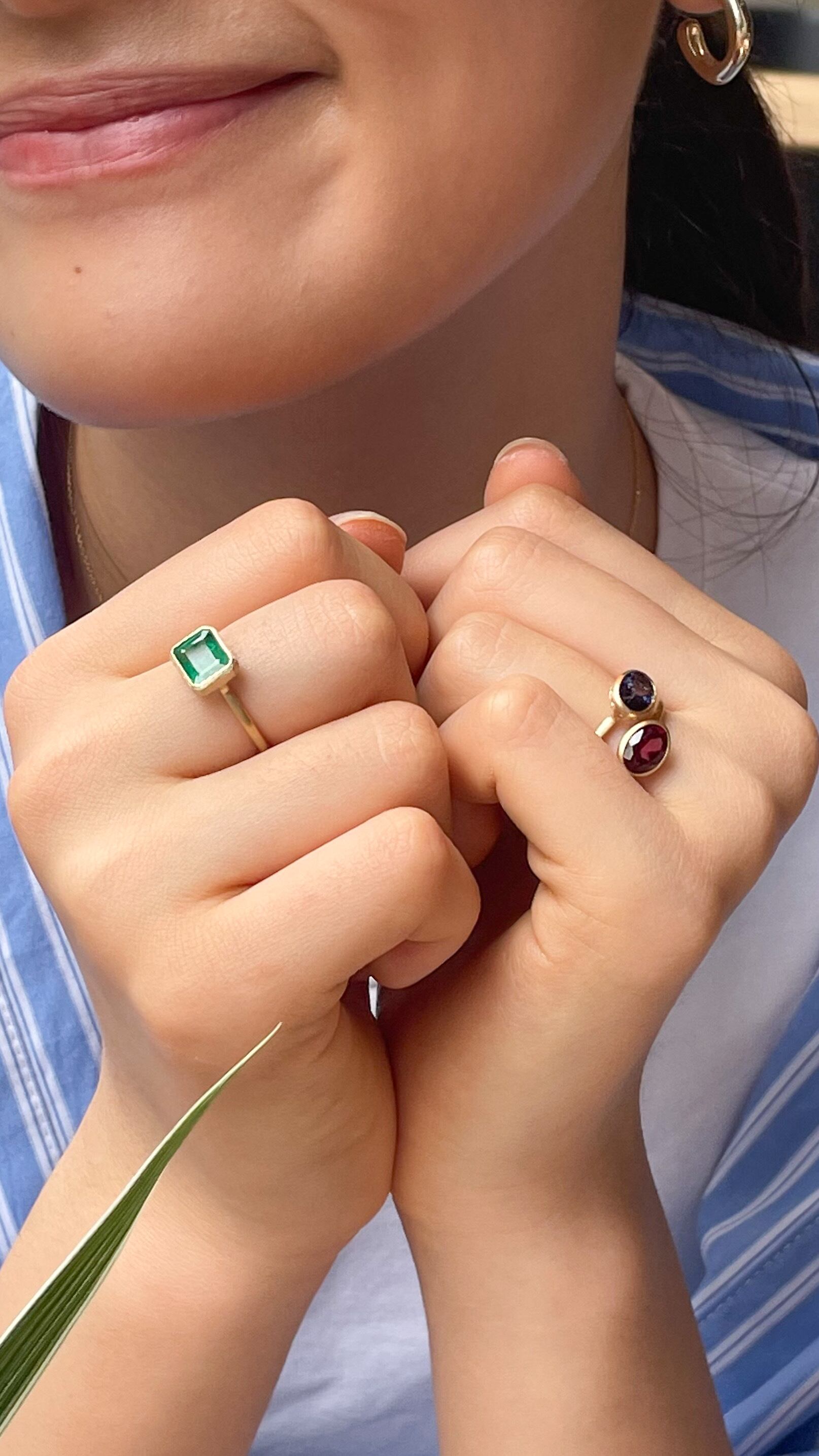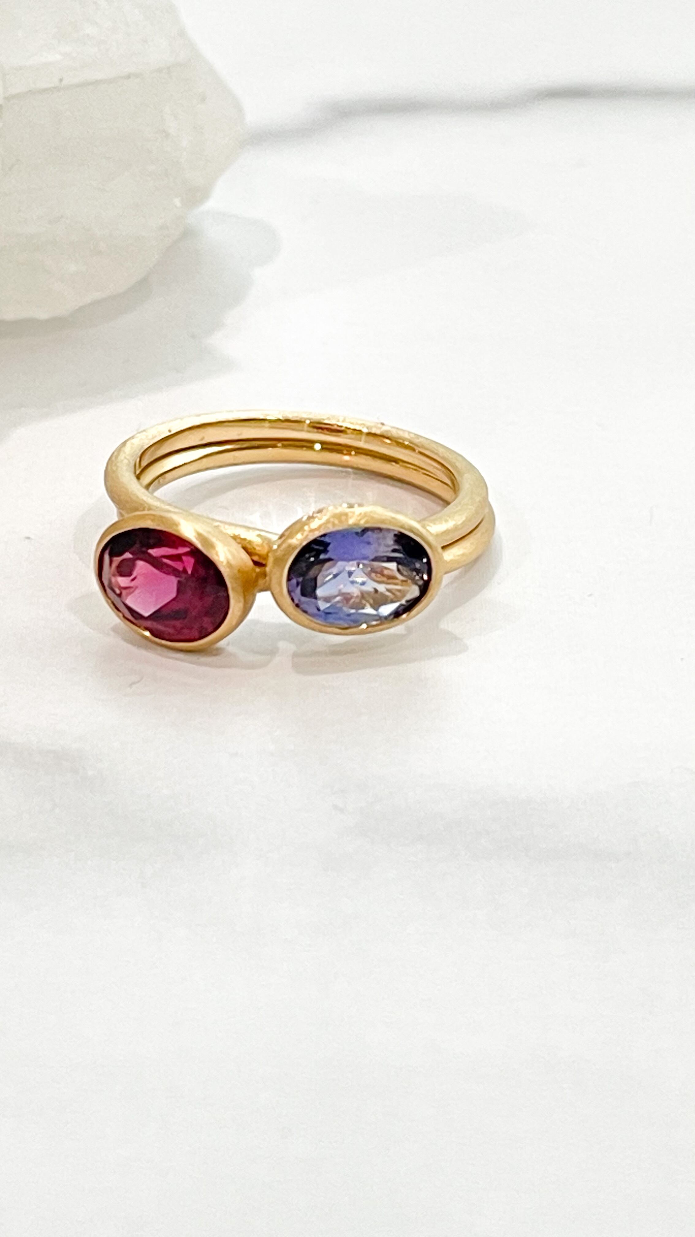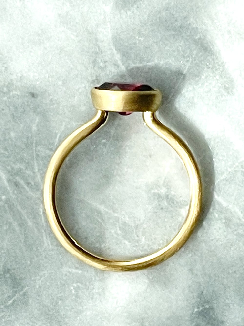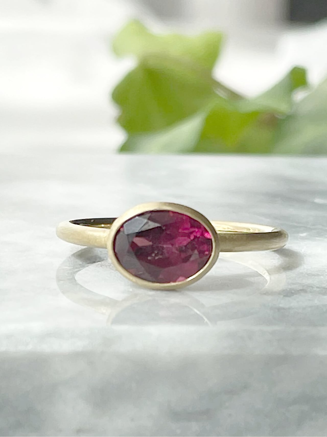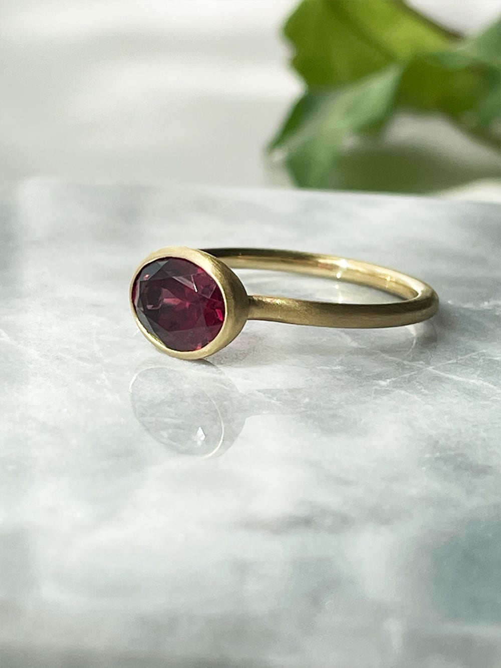 ボルドーカラーという表現がぴったりな大人色のリングです。