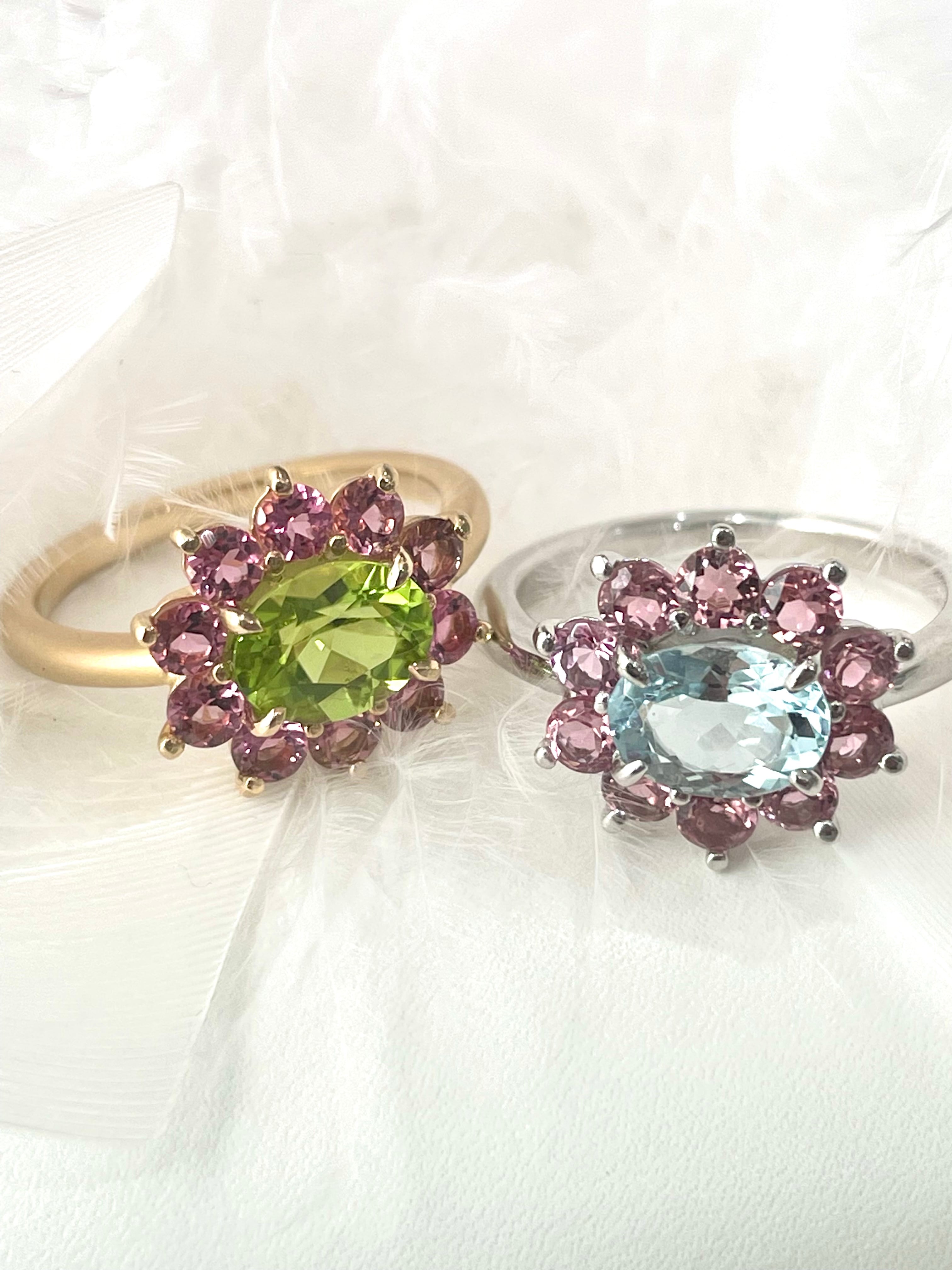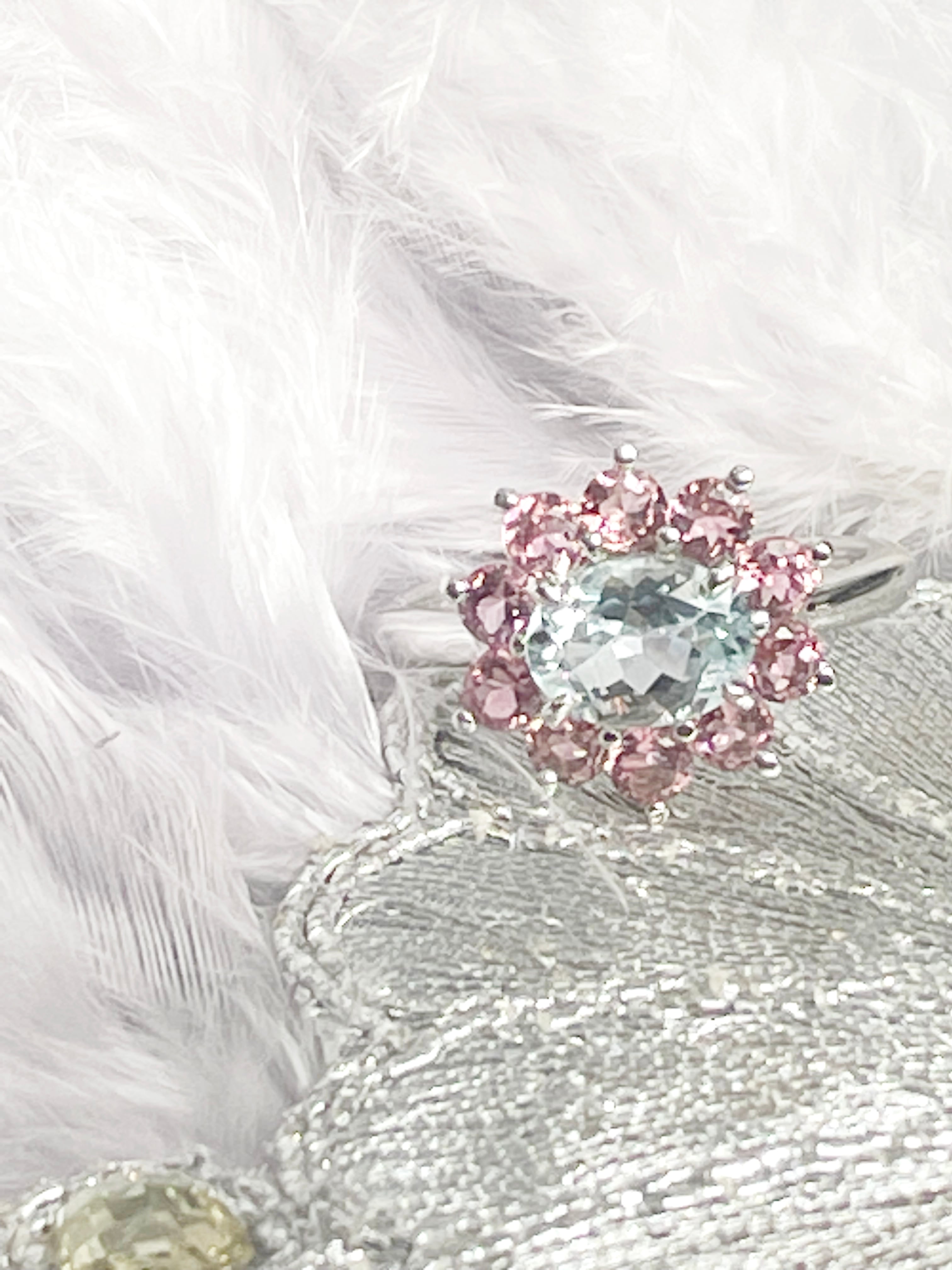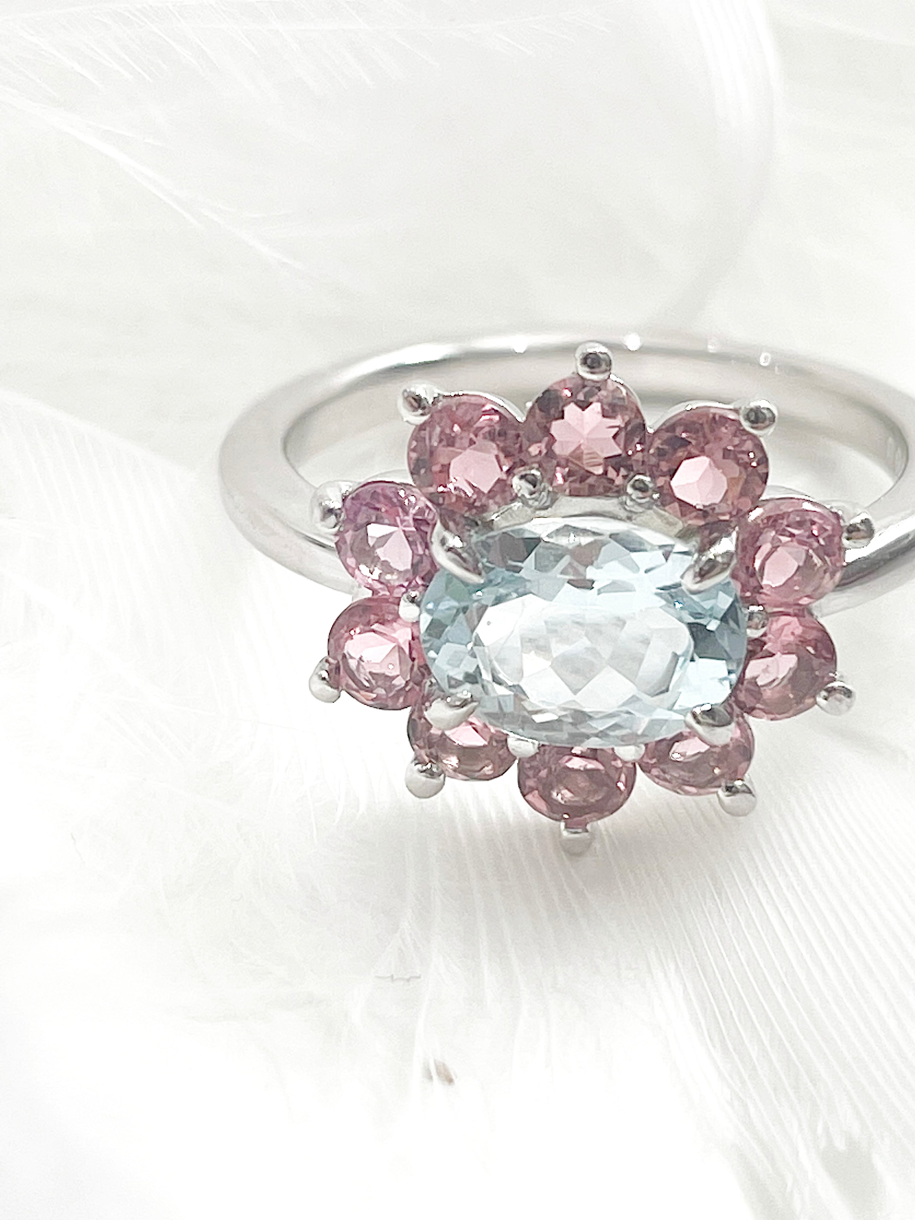 すっきりと澄んだカラーのアクアマリンと優しいピンクのコンビネーションが