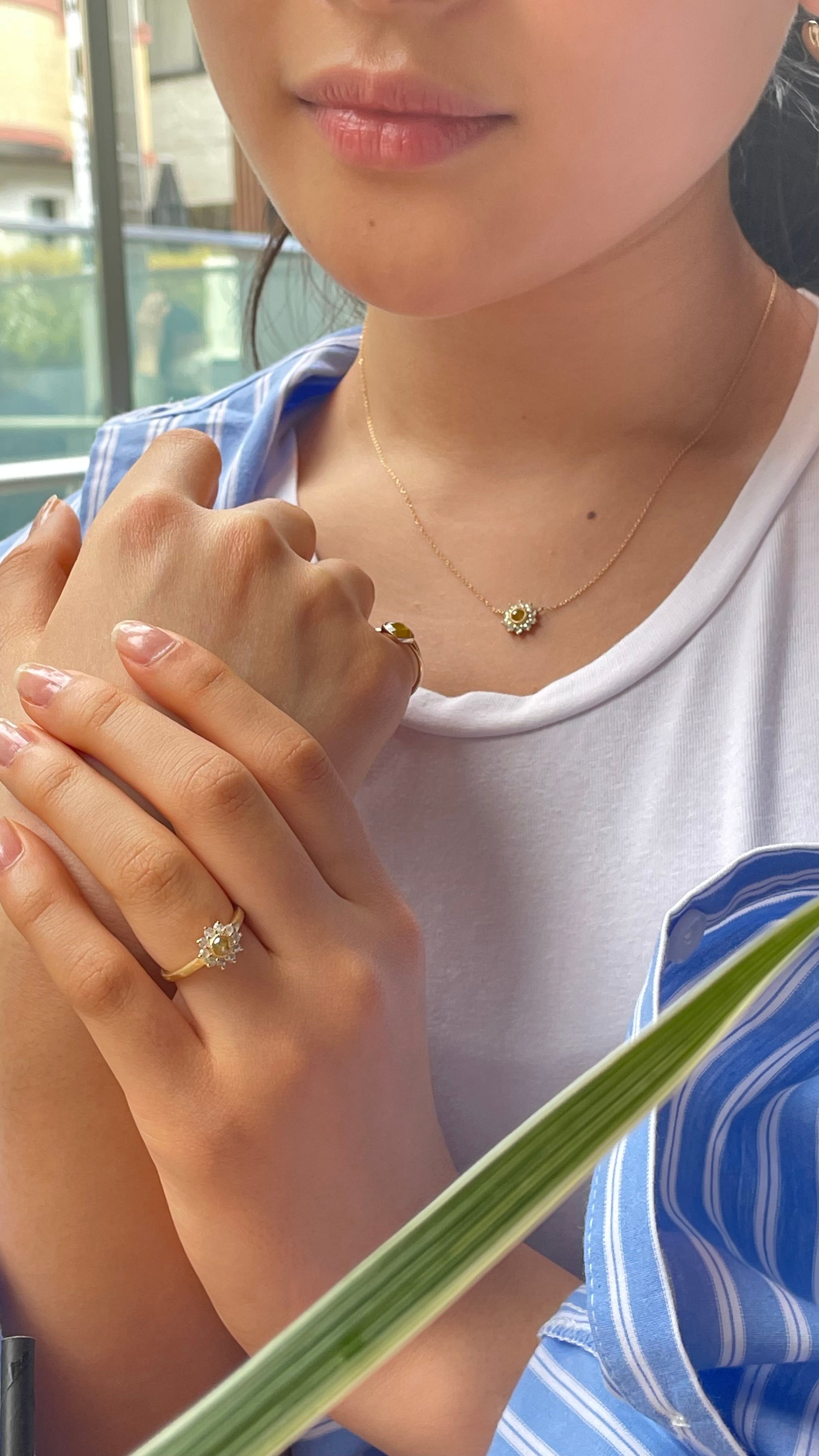 煌めくイエローカラーのアンティークカットダイヤモンドが